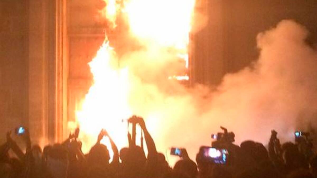 Algunas personas hicieron pintas y trataron de quemar una puerta de Palacio Nacional, además de hacer un intento por derribarla.