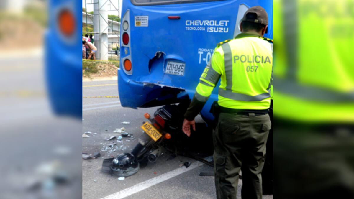 'Él (el mototaxista), trató de eludir el bus, pero es que iba muy metido y casi lo logra pero se dio duro contra la parte trasera', dijo un testigo.
