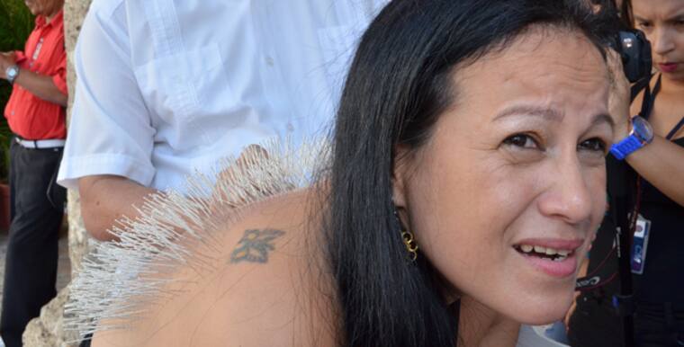 Cartagena. Tratando de ilustrar lo que sienten los toros de lidia en la suerte de banderillas, en medio de una corrida, la animalista Fanny Pachón se insertó ayer 2.050 agujas en la espalda. La razón: elevar su voz de protesta y rechazo contra los espectáculos taurinos que se realizarán entre hoy y mañana en Cartagena.