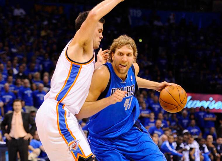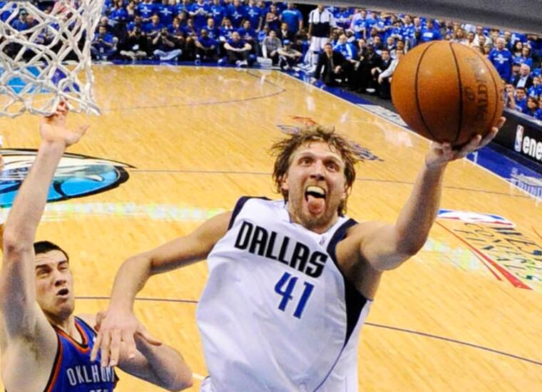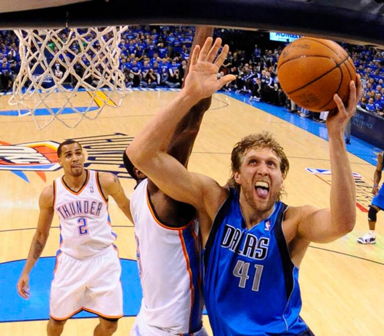 Ese es el alero de los Mavericks de Dallas, el alemán Dirk Nowitzki, el mismo que viene de liderar, con 40 puntos, la victoria de su equipo 112-105 ante los Thunder de Oklahoma para colocar la serie de la final de la Conferencia Oeste 3-1 a favor.