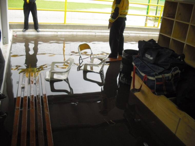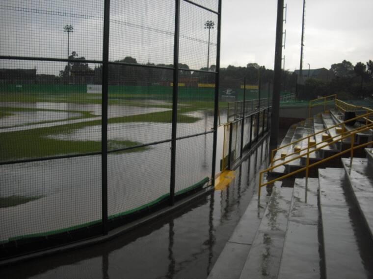Hoy, a partir de la 1 p.m., se jugará un double header en el mismo estadio, que ayer tenía inundado su diamante, tribunas, pasillos externos y dugouts.