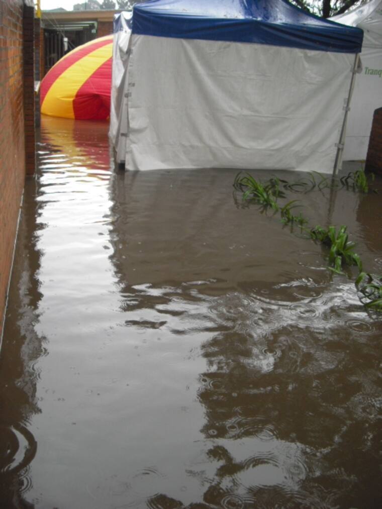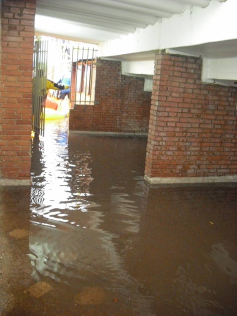 Lamentablemente la tempestad dejó al escenario de pelota convertido en una piscina, sólo apto para ‘water béisbol’.