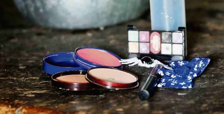 Los accesorios que usaba Charool: maquillaje gastado y los ganchos en la cabeza.