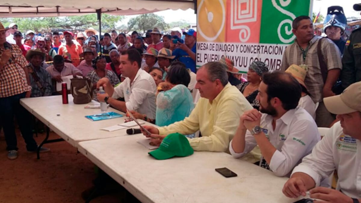 El ministro de Agricultura Aurelio Iragorri lidera una mesa de diálogo con los wayuu que bloqueaban la vía férrea del Cerrejón para solicitar más atención del Gobierno Nacional.