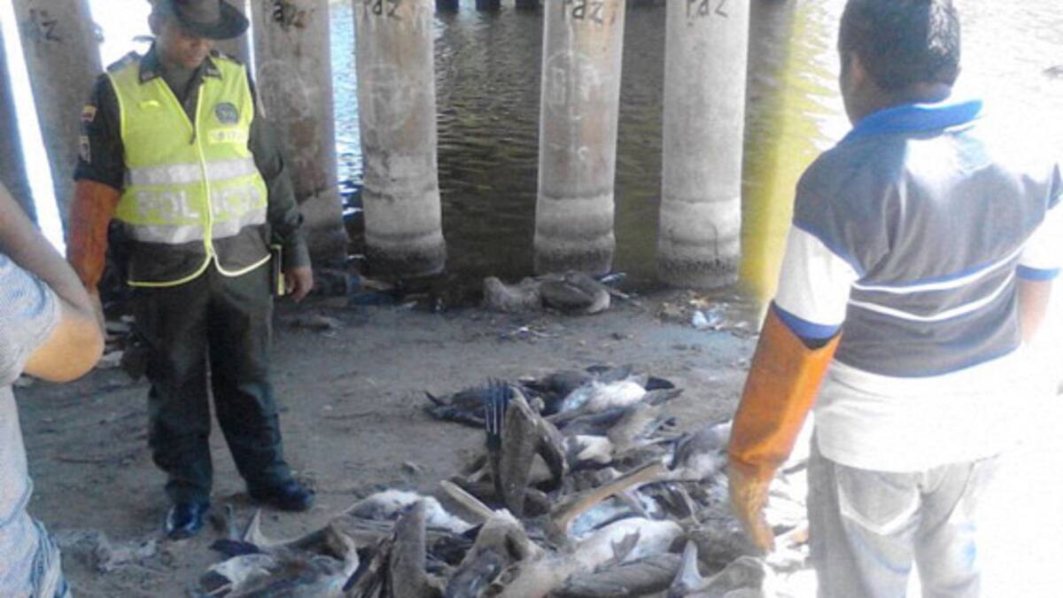 Unos 60 pelícanos fueron encontrados muertos en el sector del Riíto, en la desembocadura del río Ranchería en la ciudad de Riohacha.