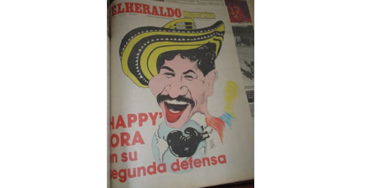 20. El popular dibujante Turcios, hizo su primera caricatura para EL HERALDO en 1985, cuando Miguel ‘El Happy’ lora se coronó campeón mundial de boxeo. También fue la primera vez que el periódico abrió con una caricatura en portada.