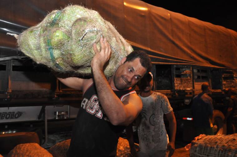 A las 7:30 de la noche arribó, algo tarde, la primera tractomula y el movimiento arrancó en pleno. Se abrieron las apuestas sobre quién puede cargar más bultos de un solo tirón y comienza mi propio viacrucis “¡15 de criollas!”, se escucha el grito.