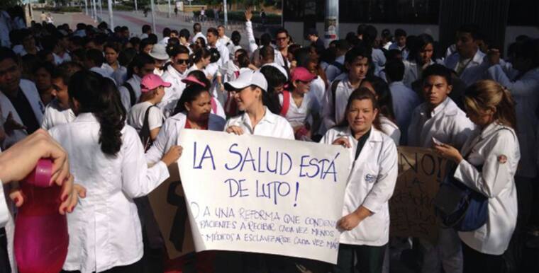 Centenares de médicos, catedráticos, pacientes y estudiantes de medicina en todo el país salieron ayer a marchar por las calles para protestar por el proyecto de reforma a la salud que cursa en el Congreso.