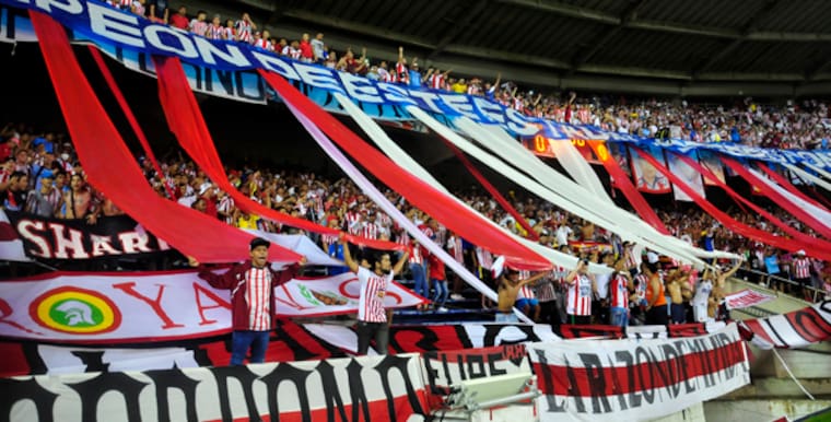 La tribuna toma forma. Los nombres de Alboraya, San José, Donde estés estaré, San Felipe y ‘La Banda de los Kuervos’, sobresalen. Siete ‘techos’ rojos y siete blancos cubren la zona baja de norte. El reloj marca las 5:30 p.m. y ya empieza a haber más movimiento. El silencio es interrumpido por la voz del animador del estadio. Está probando el sonido y de fondo suena tres veces ‘En Barranquilla me quedo’, pero ‘Pudín’, uno de los organizadores de la tribuna, hace un pequeño cambio en su letra ‘En Barranquilla los Kuervos’, ‘En Barranquilla los Kuervos’…