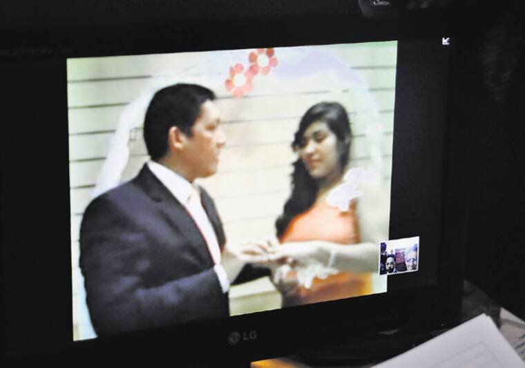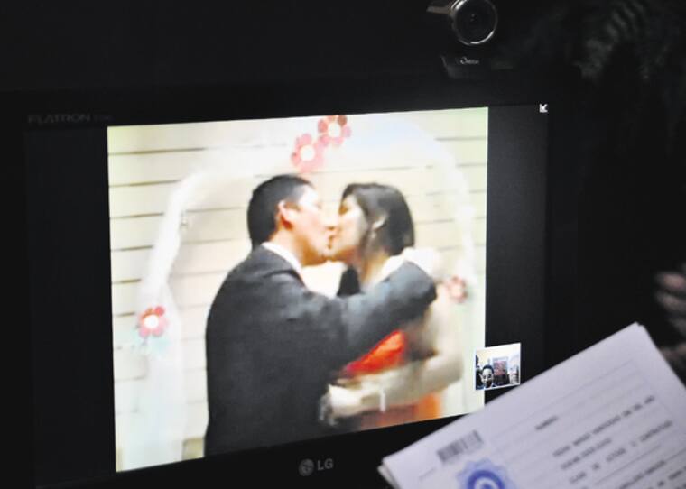 La figura de los novios proyectada en la pantalla llegaba nítida y con un sonido algo deficiente.