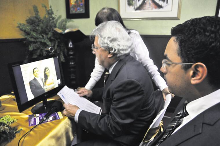 Los computadores estaban listos, las cámaras sincronizadas, la señal era óptima y fluida. El Messenger esta vez se convirtió en el puente entre dos continentes, en el enlace ideal para que un par de colombianos pudieran concretar el sueño de poder unirse como esposo y esposa en una ceremonia que se concretó en línea y fue presidida por el Notario Primero, Público del círculo notarial de Soledad, a cargo de Joao Herrera.