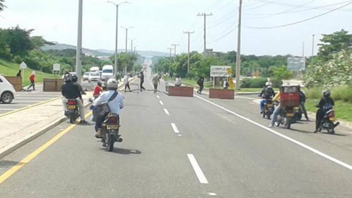 Desde el mediodía de este viernes un grupo de jóvenes vestidos con capuchas bloquean la vía al mar a la altura de la Universidad del Atlántico.