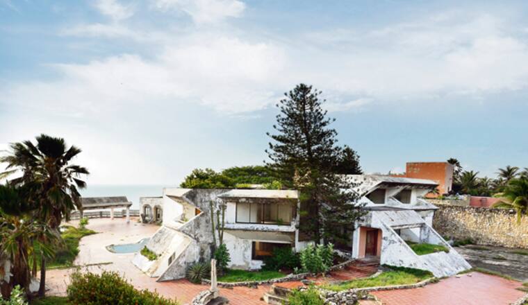 Es como una plomiza nave espacial que se oxida bajo los soles del Caribe y el viento salvaje del acantilado, desde el cual —más de una vez— se avistaron barcos cargando marihuana. Ya no quedan muebles ni ventanas.