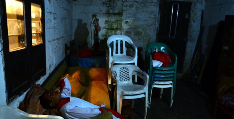 El sacristán de Santo Domingo Savio toma un descanso en la casa cural entre las paredes llenas de moho y humedad.