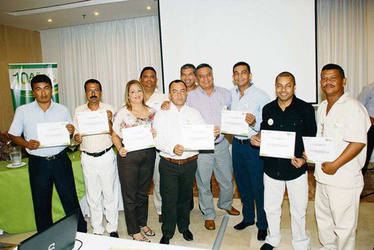 Con la presencia toda la Junta Directiva, la Asociación Mutual Barrios Unidos de Quibdó –Ambuq– celebró sus 10 años de fundación. Durante el evento se exaltaron a los funcionarios con 10 años de vinculación con la EPS, entre ellos (de izquierda a derecha) Luis Algarín, Tomás De las Salas, Francia Pineda, Mario Pacheco, Jorge Aguilar, José Oquendo, Gerardo Vecino, Edwin Lizarazo, Jairo Alemán y Fernando Natera.