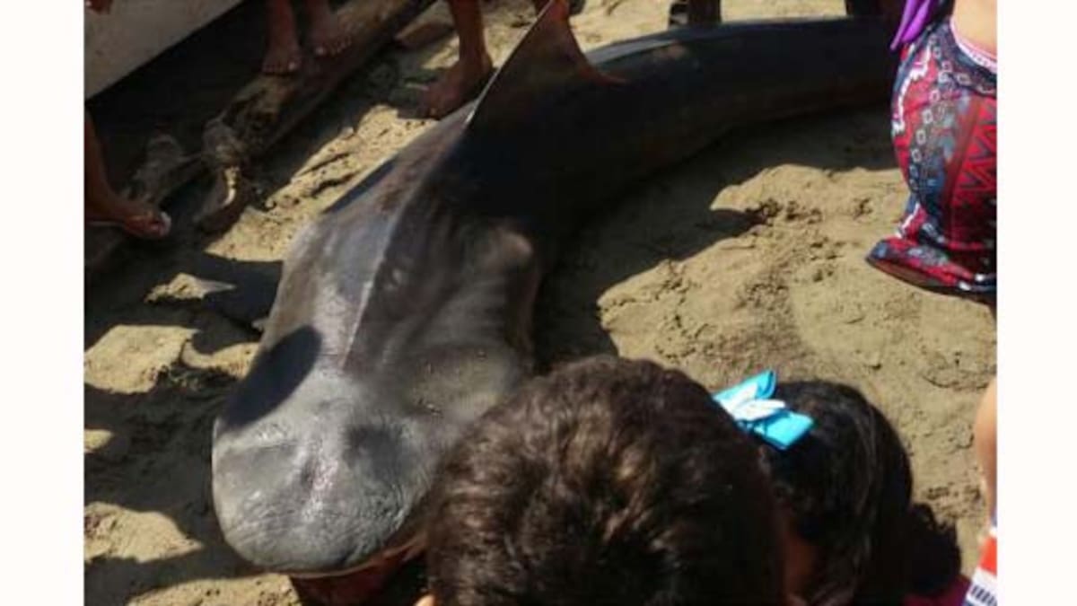 'Nosotros estábamos almorzando cuando la gente empezó a correr para verlo. Los pescadores dijeron que murió al poco tiempo de quedar atrapado. La gente empezó a tomarle fotos, pero igual se siguieron bañando sin miedo', contó la lectora.