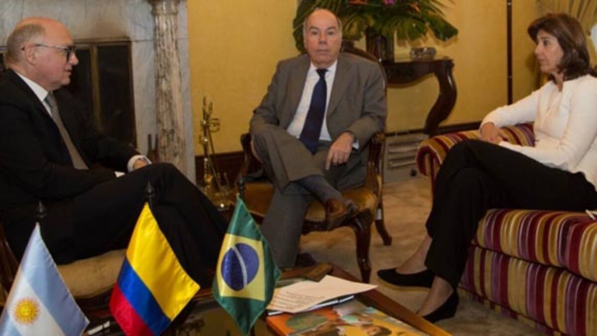 En un comunicado, la Cancillería indicó que la ministra colombiana de Relaciones Exteriores, María Ángela Holguín, recibió este viernes a sus colegas de Brasil, Mauro Vieira, y de Argentina, Héctor Timerman.