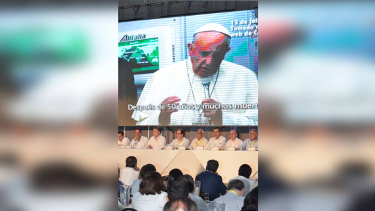 El texto, que fue leído por el secretario general de la Conferencia Episcopal de Colombia, Monseñor José Daniel Falla, en desarrollo de la ceremonia inaugural del XVIII Encuentro de la Jurisdicción Ordinaria que se cumple en Cartagena, sostuvo que Su Santidad acompaña con sus oraciones para que el trabajo de la paz y la justicia en Colombia fructifiquen dentro del cuadro institucional y el respeto por el ordenamiento jurídico nacional e internacional.