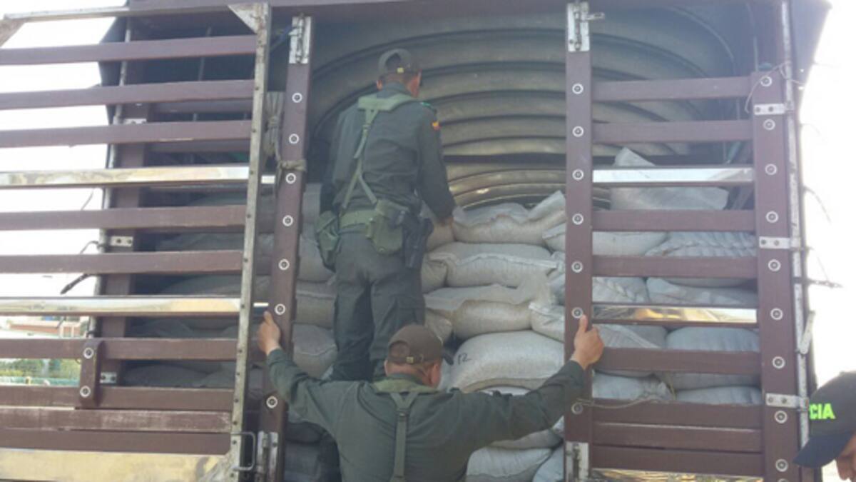 Los vehículos que venían en caravana fueron interceptados por la Policía, cuando llevaban en la parte superior varios bultos de azúcar, en donde venían camuflados los licores, cerveza e hidrocarburos.