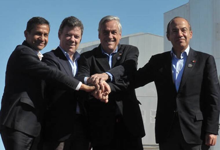 Los presidentes Piñera, Juan Manuel Santos (Colombia), Felipe Calderón (México) y Ollanta Humala (Perú) firmaron el acuerdo constitutivo del nuevo bloque, que proyecta a cuatro de las economías más importantes de Latinoamérica hacia la región más dinámica actualmente de la economía mundial.