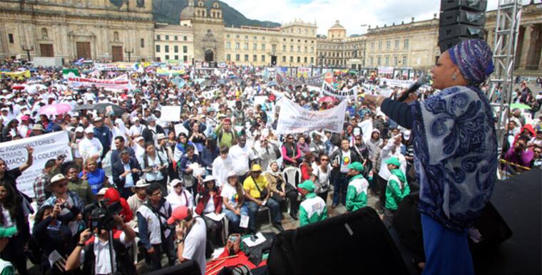Córdoba dijo a los manifestantes que 'Petro es el legítimo alcalde de Bogotá, apoyar al alcalde es una causa democrática. Vamos todos y todas a las urnas a defenderlo. Petro defendió lo público al sacarle plata del bolsillo a los privados corruptos para aprovecharla en favor de la gente. ¿Vamos a permitir que se usen los organismos de control como burdas herramientas para perseguir a los líderes sociales?'.