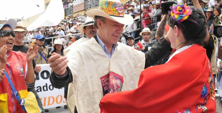 El Presidente Juan Manuel Santos participó este domingo en el desfile magno del Carnaval de Negros y Blancos de Pasto, ciudad que visitó para la firma del Contrato Plan para el departamento de Nariño.