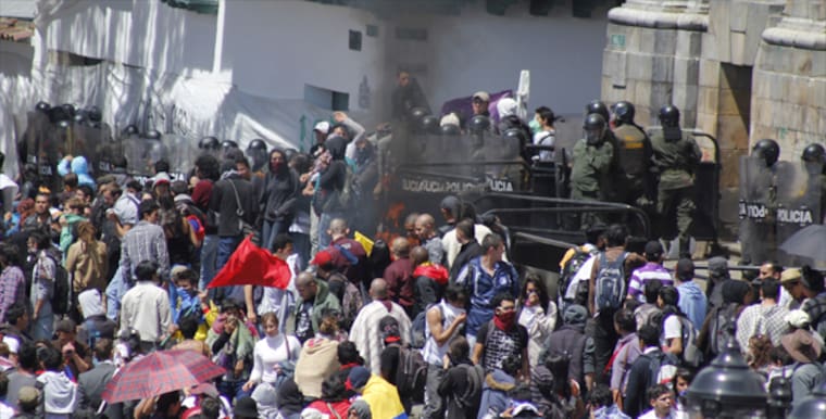 Desde su inicio las protestas campesinas han dejado al menos dos civiles muertos, medio centenar de personas heridas y al menos 175 detenidos, según grupos de derechos humanos que han denunciado abusos de la fuerza pública y han demandado la renuncia del ministro de Defensa, Juan Carlos Pinzón. El gobierno 'vive momentos contradictorios desde todo punto de vista. Mientras sostiene un discurso político sobre la necesidad de llegar al fin de conflicto armado, al mismo tiempo actúa de manera represiva contra la población civil', indicó en un comunicado el no gubernamental Movimiento de Víctimas de Crímenes de Estado.