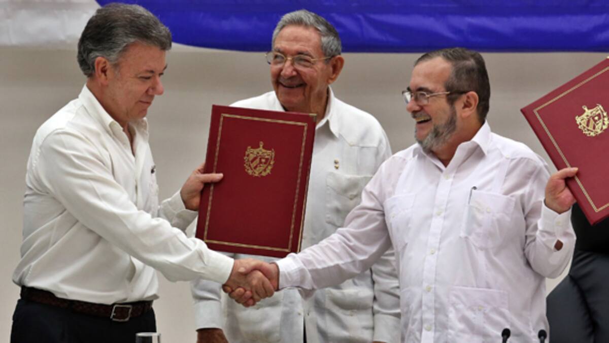 Santos se reúne en La Habana con el jefe de las Farc, Rodrigo Londoño, alias ‘Timochenko’, con quien protagoniza un histórico apretón de manos. Acuerdan que la paz se firmará, 'a más tardar', el 23 de marzo de 2016.