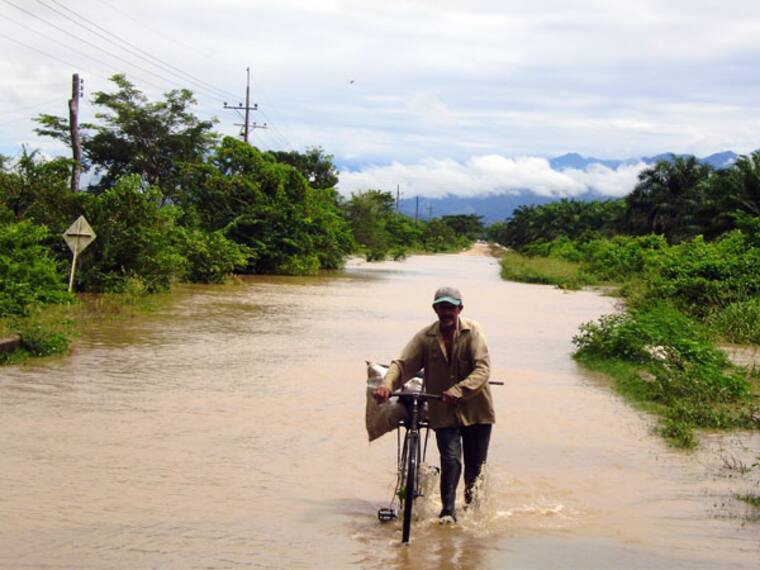 En El Banco, el río Magdalena empezó a salirse de su cauce, inundando las primeras calles del barrio Cesar. También la vía a Guamal está agrietada impidiendo el tráfico vehicular.