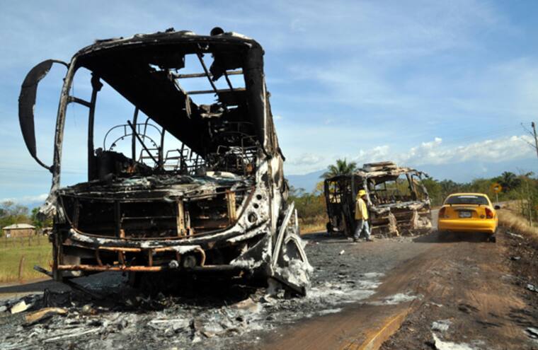 En la noche del martes anterior, en medio de la protesta, un bus y una buseta de servicio interdepartamental de transporte fueron incineradas a la salida del pueblo.