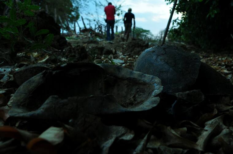 El recorrido que hacen para llegar a su destino final es una especie de cementerio improvisado: los caparazones de hicoteas saltan a la vista y se confunden con las piedras que han terminado allá por designio de la naturaleza, por los juegos infantiles o por el recuerdo latente de la ola invernal de hace dos años.
