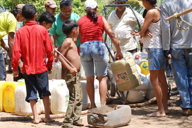 'Si esta semana no llueve, tendremos que irnos para Ovejas' dijo Helena Ramírez, mientras buscaba afanosamente un lugar donde encontrar agua. Con ella, cientos de mujeres, hombres y niños deambulan de un lado a otro en busca del líquido para calmar la sed.