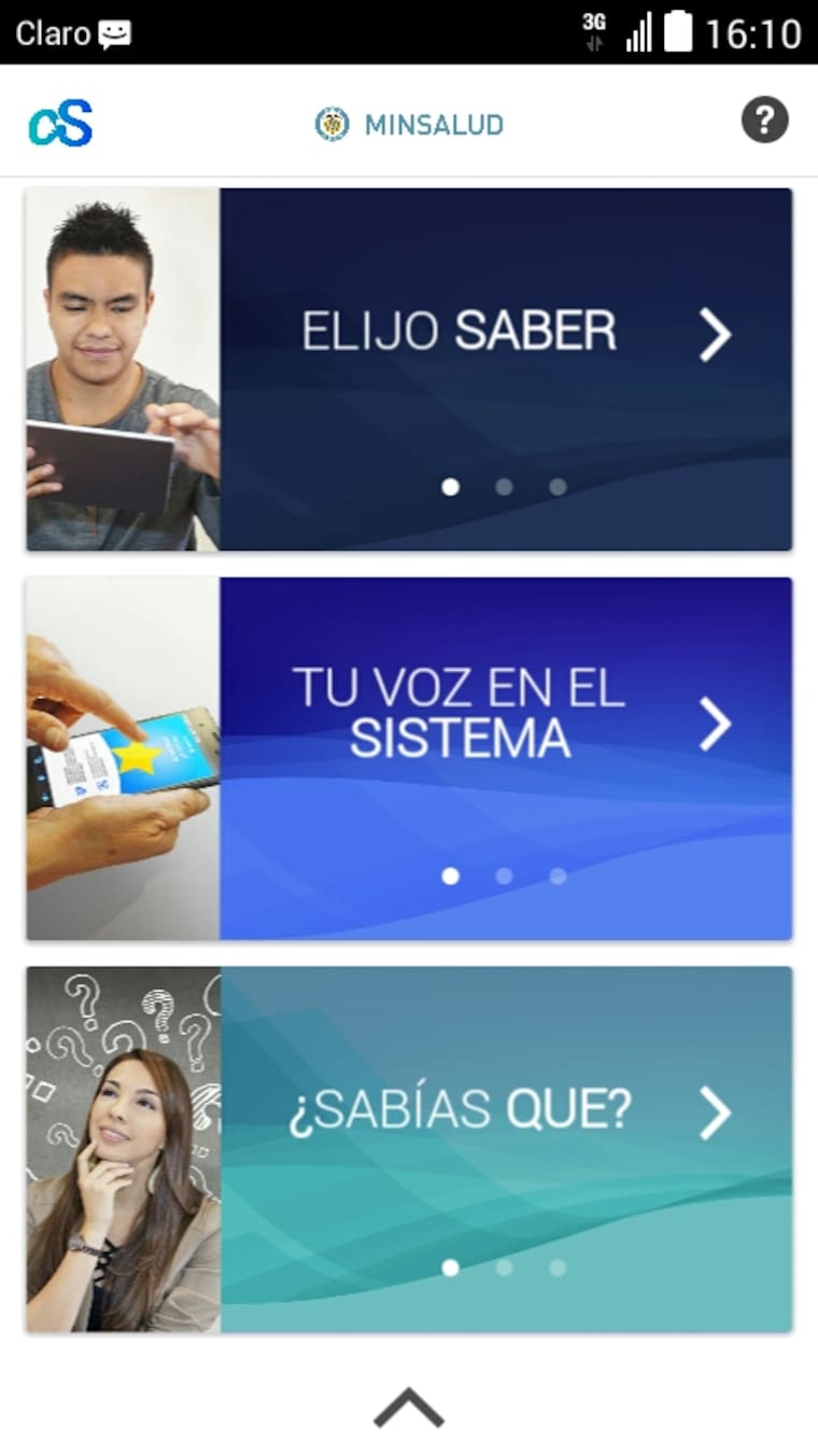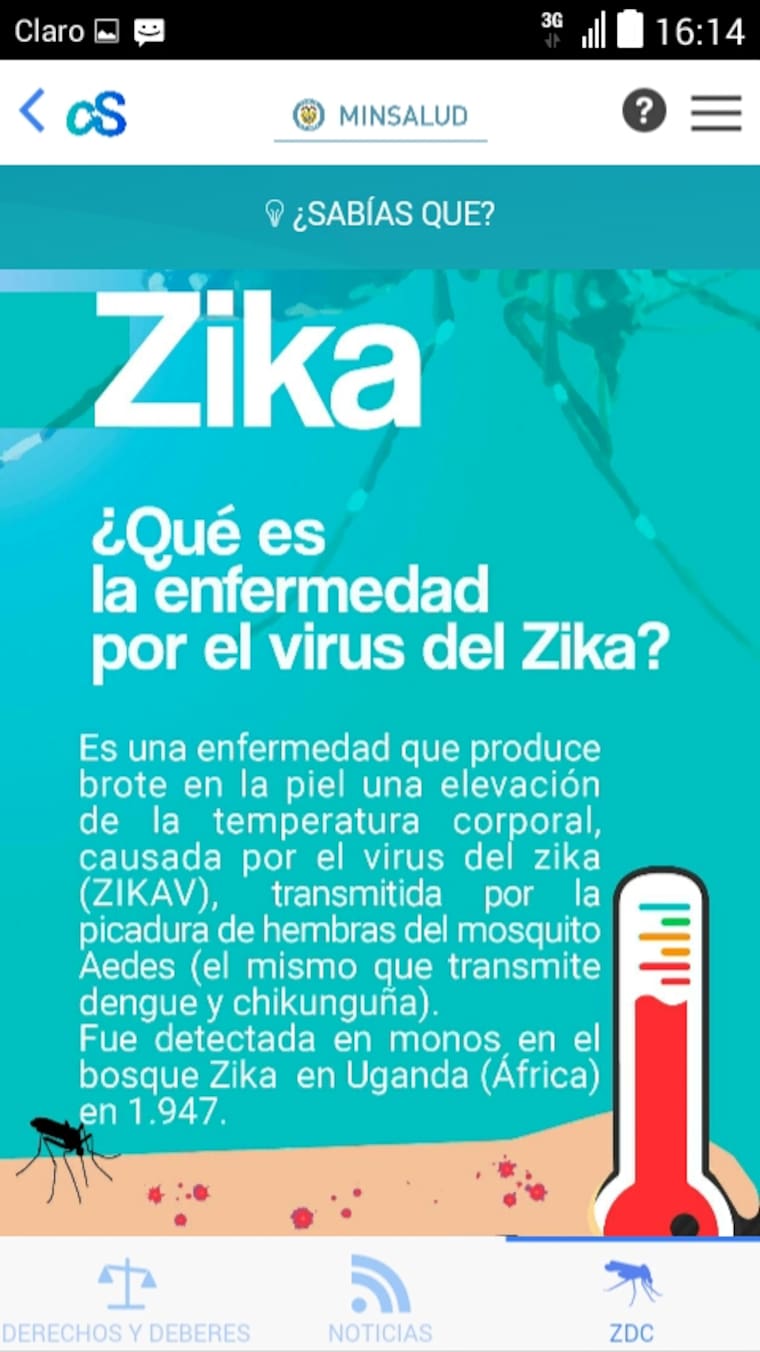 La última pestaña del menú principal se llama '¿Sabías qué?', en esta el usuario se entera sobre lo que está sucediendo en el sistema de salud, conoce sus derechos y deberes en el sistema, se entera de las últimas noticias y conoce los síntomas y recomendaciones relacionadas con el zica, chikunguña y dengue.