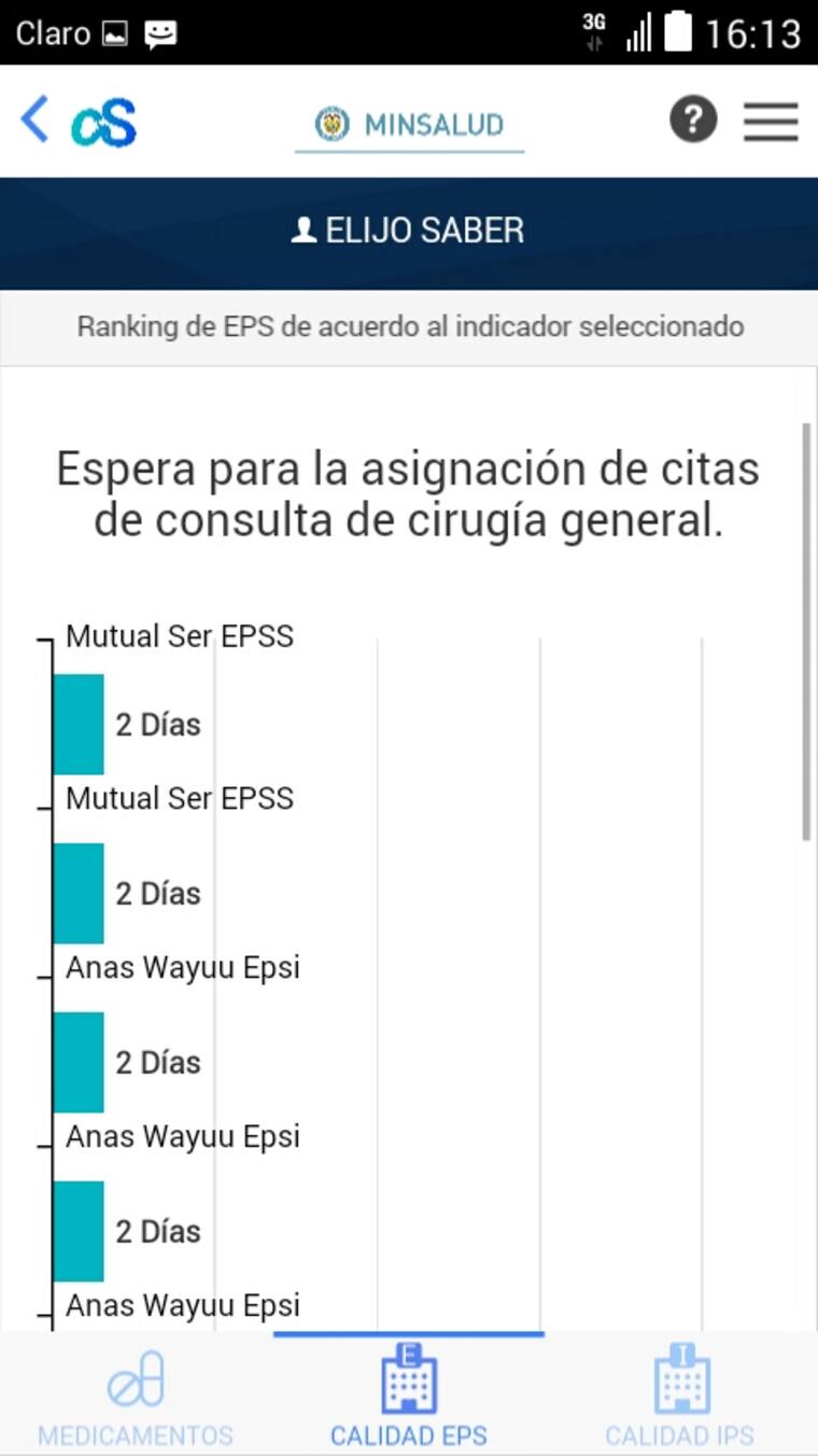 La app presenta un ranking de las diversas EPS e IPS en el que se puede conocer qué EPS tienen las mejores tasas de satisfacción según sus usuarios, cuáles manejan mejores tiempos de espera para asignación de citas, entre otros aspectos de calidad en la atención en salud.