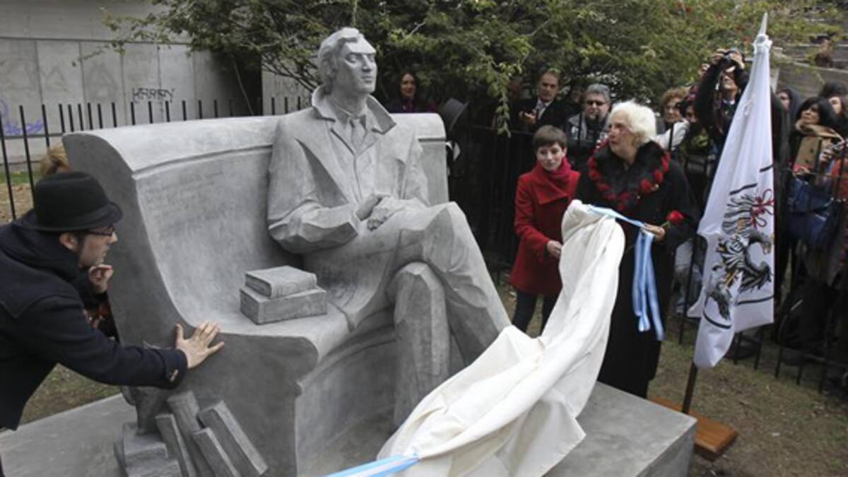'Nada está perdido si se tiene el valor de proclamar que todo está perdido y hay que empezar de nuevo', se lee como cita de 'Rayuela' en la escultura inaugurada hoy en el parque de la Biblioteca Nacional, en Buenos Aires.