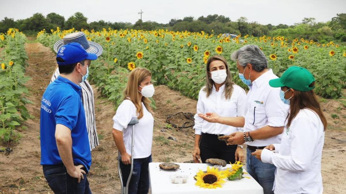 'Estamos muy contentos de ver cómo hace tan solo 46 días se cultivaron estos girasoles y ya están dando fruto. Con este proyecto piloto estamos investigando en campo, de la mano de nuestros campesinos, todas las ventajas de su siembra para el departamento', indicó la gobernadora Elsa Noguera.