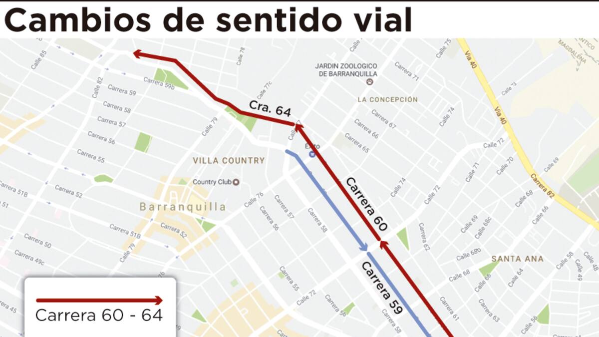 Mientras, que la carrera 60/64 entre calles 81B y 58, pasará de doble sentido vial a único sentido de oriente a occidente.