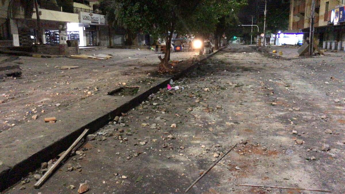Luego de las manifestaciones que tuvieron lugar en las inmediaciones del estadio Romelio Martinez el miercoles, grandes cantidades de basura y escombros quedaron en las calles obstaculizando la movilización de vehículos.