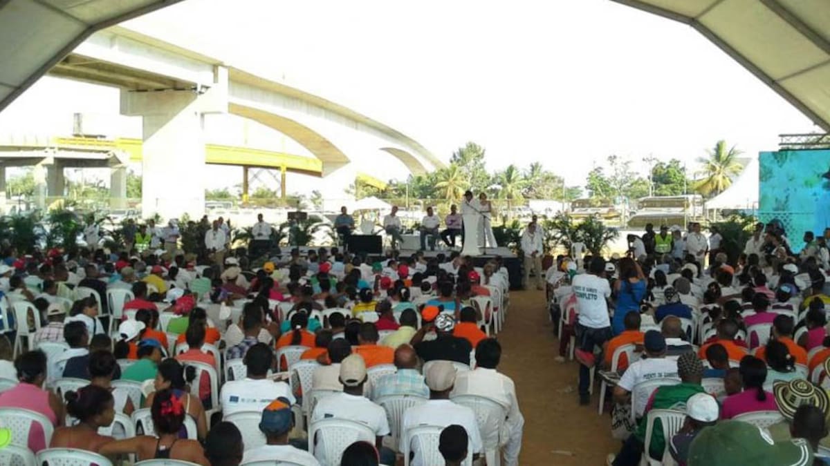 El presidente Juan Manuel Santos, y de varios Ministros de su gabinete, y autoridades de la región, tras mas de un año de trabajo y con una inversión de $82.345 millones, el Fondo de Adaptación entrega hoy el nuevo Puente de Gambote, en Arjona, norte de Bolívar.