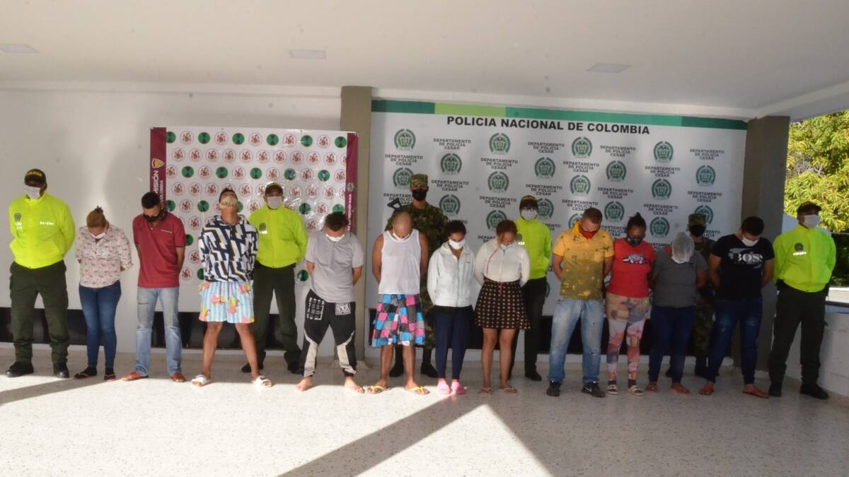 Los detenidos fueron identificados como Dair Cervantes, alias ‘El Oso’, de 31 años; Geiner Palacios, alias ‘Cachaco’, de 29 años; Osiris Ospino, alias ‘Os’, de 33 años; Miledis Miranda, alias ‘Mona’, de 30 años; Rafael Antonio Corrales, alias ‘Eléctrico’, de 50 años; Cecilia Rincones, alias ‘Negra’, de 35 años; Pablo Vides, alias ‘Vides’, de 28 años; Ana Tulia Vega, alias ‘Tulia’, de 35 años; Yesis Morillo, alias ‘Yesi’, de 28 años; María Arias Romero, alias ‘Flaca’, Luis Arzuza, alias ‘Cachorro’; y Walter Moreno Hernández, alias ‘Camerún’, de 40 años.