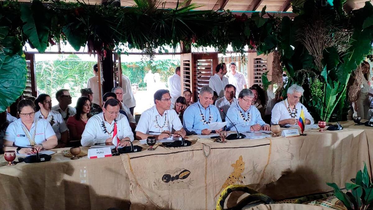 Los delegados de la región, ataviados con collares indígenas y reunidos en la Universidad Nacional de Leticia, se prevé que produzcan el Pacto de Leticia al final de la tarde.