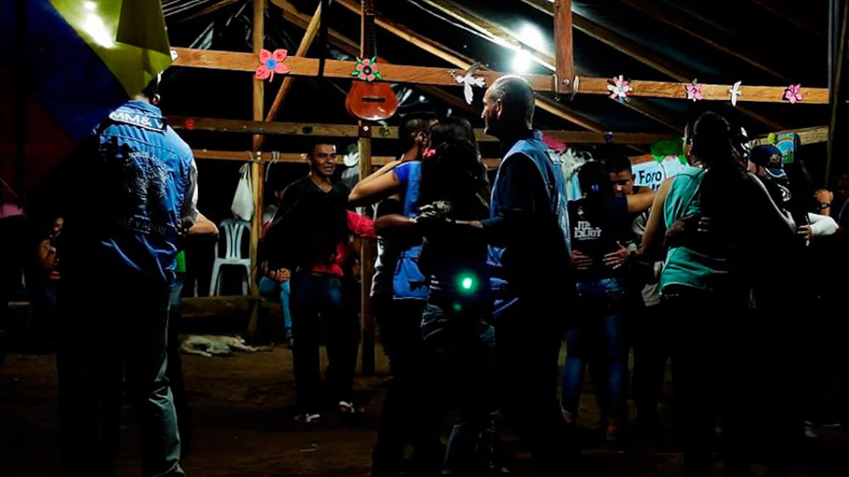 El baile entre los funcionarios de la ONU y algunas de las guerrilleras del punto de preagrupamiento de las Farc en Conejo (La Guajira), fue al ritmo de 'Pidiendo vía', el vallenato de Diomedes Díaz con el que celebraron el nuevo año al pide de la Serranía del Perijá, donde se ubica este campamento.
