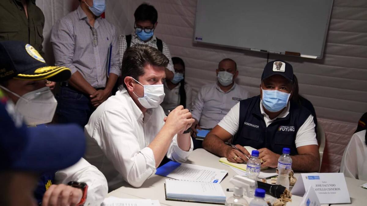 'Hoy en Arauquita, estamos dando respuesta institucional, la prioridad es la atención humanitaria de la población que ha hecho ingreso al país para garantizarles condiciones dignas, salud y alimentación para su pronto retorno', añadió.