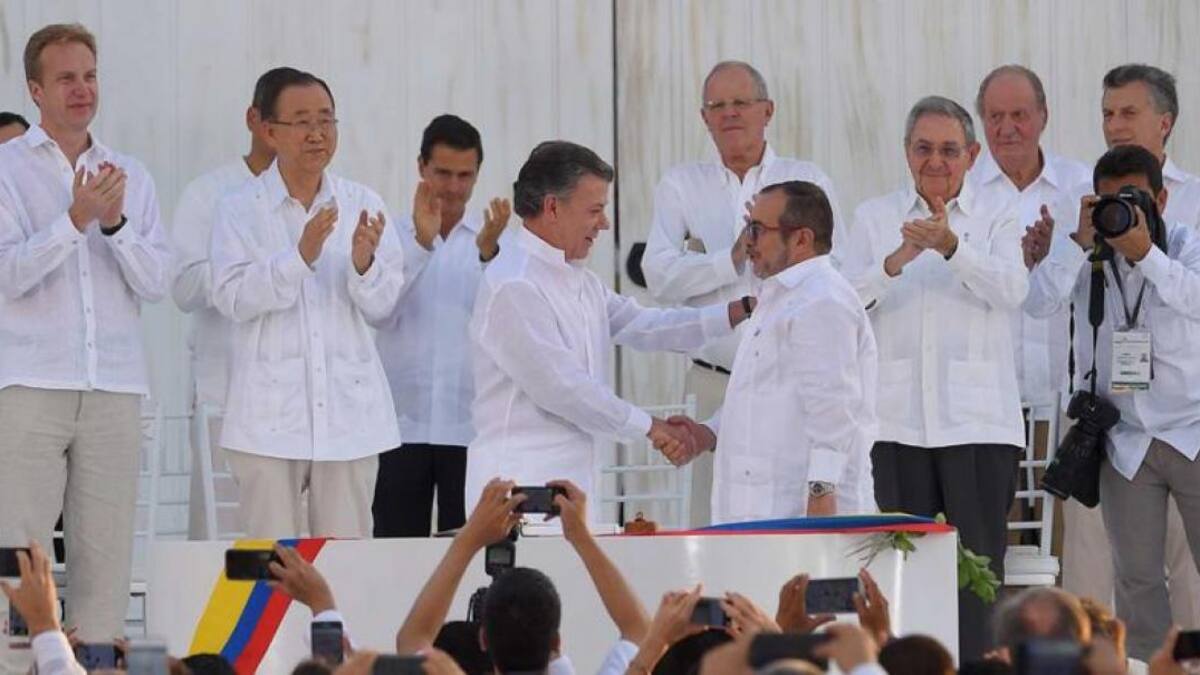 En relación con el motivo que lo llevó a firmar la paz con las Farc, citó una conversación con Nelson Mandela: 'A mediados de los 90 tenía una reunión una tarde con Mandela en Johannesburgo, prendí la televisión en la mañana y en vivo y en directo estaban presentando el encuentro de las víctimas y los victimarios en la guerra de Suráfrica, y veía cómo algunas víctimas insultaban a sus victimarios y otros se abrazaban a ellos'.