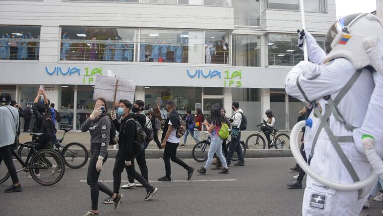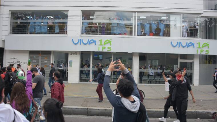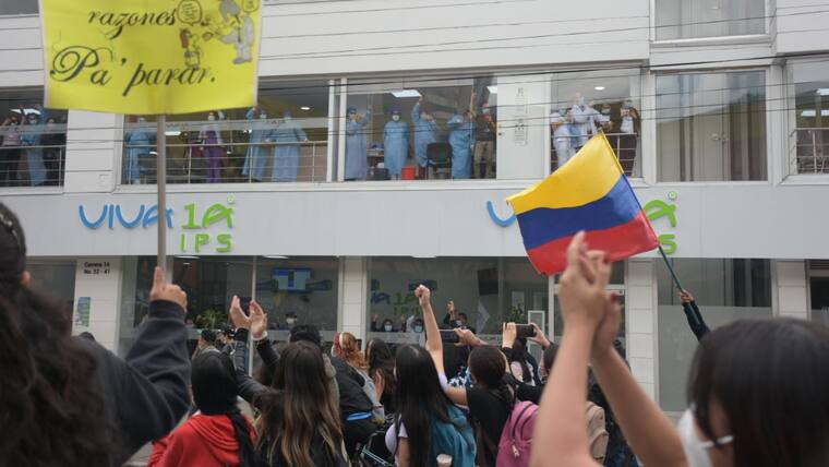 11:59 a.m. La Federación Médica de Colombia compartió un video de médicos apoyando el paro nacional en Bogotá.