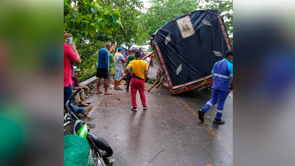 En el sitio, que está a un kilómetro del área urbana, fue necesaria la presencia de vehículos de arrastre que ayudaron a retirar el camión que quedó atrapado en un hueco que se abrió a un lado del carreteable.