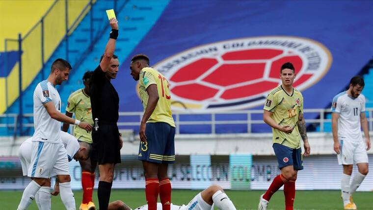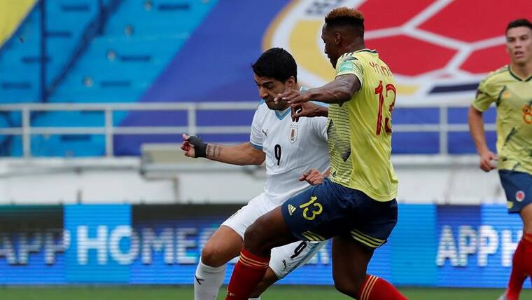 Yerry Mina recibió la tarjeta roja. Edwin Cardona casi encuentra la suya con el codo. Reflejo de la impotencia. Los pupilos del maestro Óscar Washington Tabárez transpiraron y se inspiraron. Los muchachos de Queiroz se nublaron.
