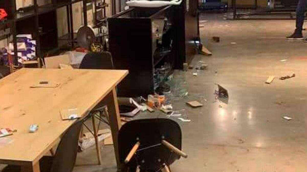 En fotos publicadas en las redes sociales se ve como en el negocio familiar de Pantano los vándalos destruyeron las vitrinas, rompieron vidrios, tumbaron sillas y mesas.