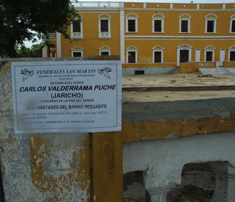 En julio del 2008, una 'mamadera de gallo' a Jaricho, conmocionó a Santa Marta y especialmente al barrio Pescaito. El sector amaneció con carteles fúnebres en sus paredes, en los que daban cuenta de su muerte.