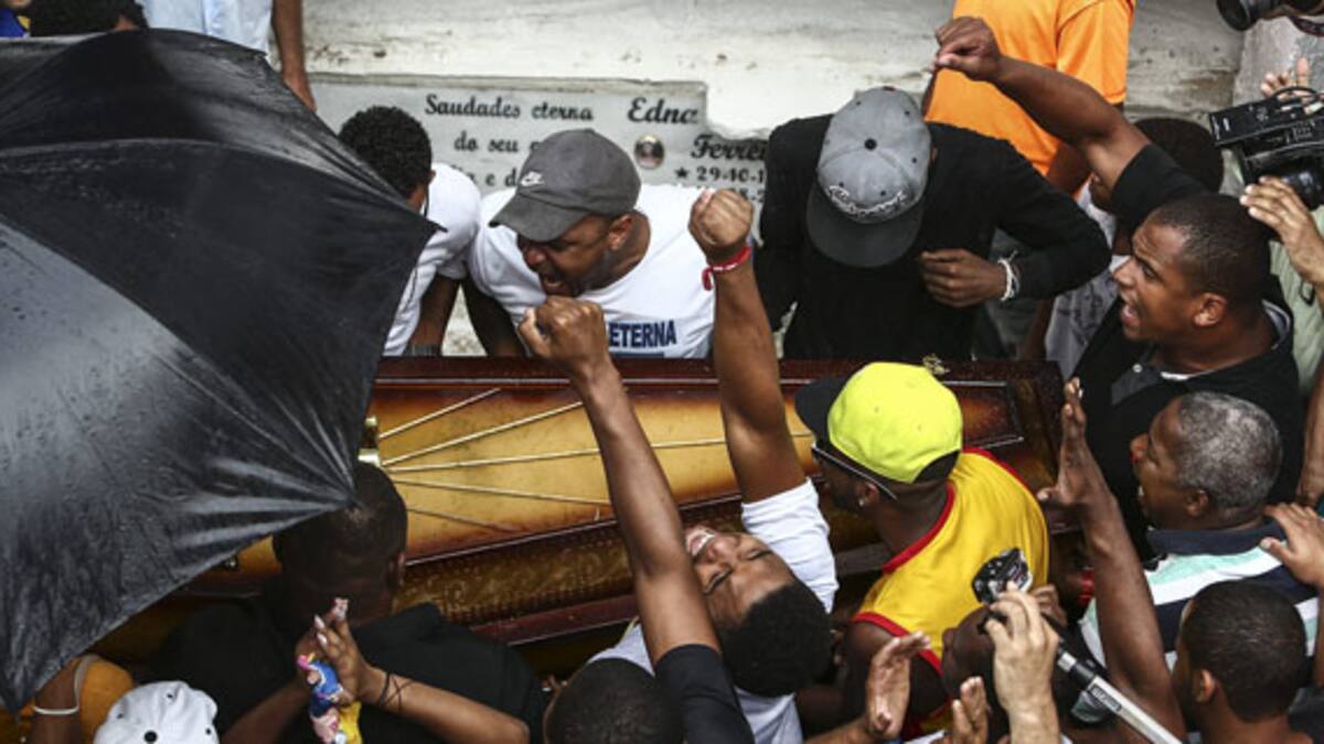 La ONG se refirió a la muerte del bailarín Douglas Rafael da Silva Pereira, cuyo cadáver fue encontrado con un tiro en una escuela de la favela Pavão-Pavãzinho el pasado martes, y a Edilson Silva dos Santos, que murió con un disparo en la cara durante las protestas que se produjeron ese día. La muerte de Pereira generó disturbios y causó protestas de los habitantes de la favela, que pararon el tráfico de vehículos en Copacabana a la vuelta del entierro del bailarín.